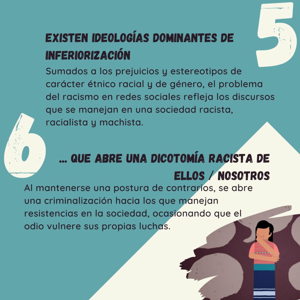 Una investigación cuyo objetivo es analizar por medio de análisis del discurso, que el racismo, como parte ideológica de la clase dominante y como fenómeno histórico estructural en Guatemala, persiste y se exacerba en presencia de las redes sociales, incluso se hace viral, convirtiéndose en una pandemia. Y se une con otra ideología, como el machismo, la misoginia y la homofobia, retro alimentándose mutuamente.